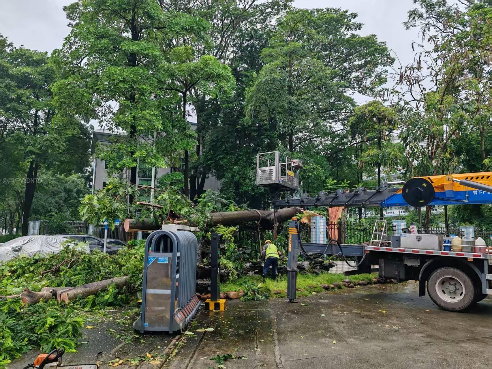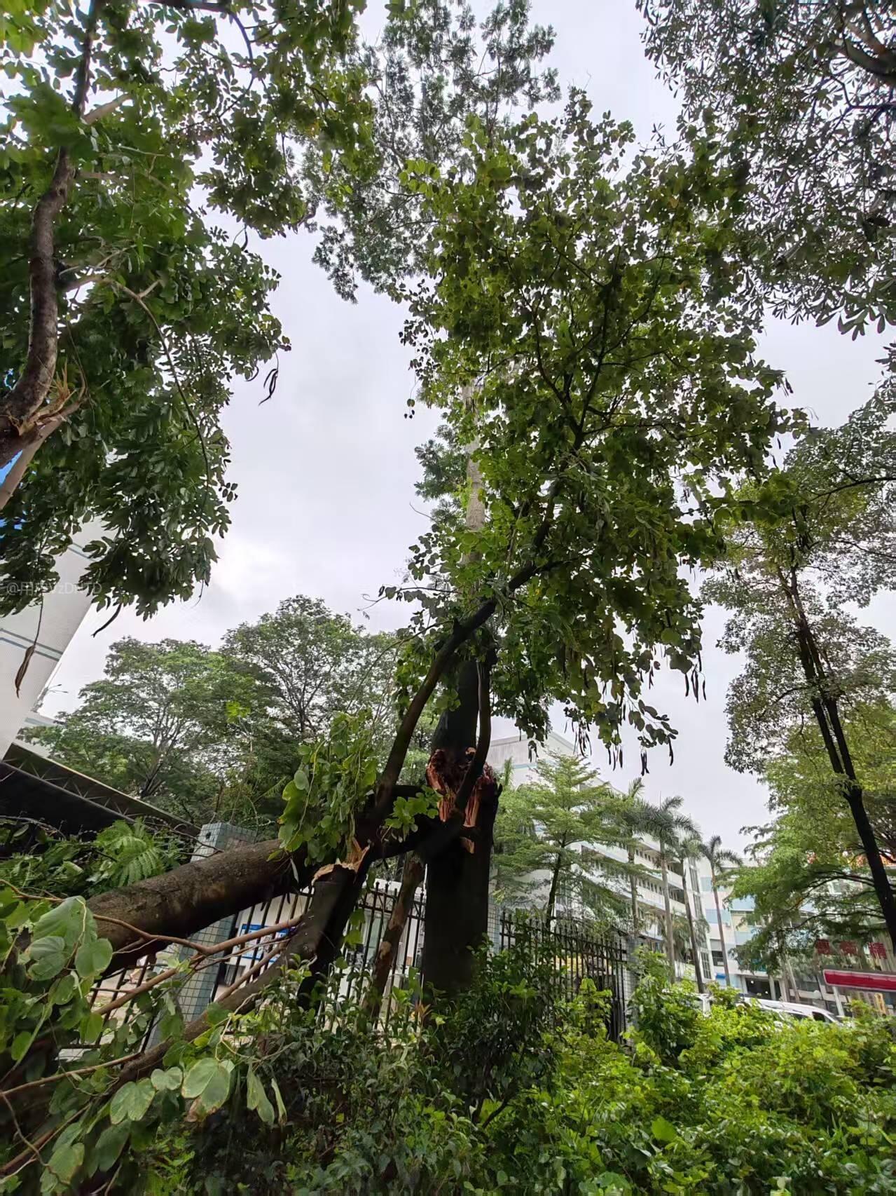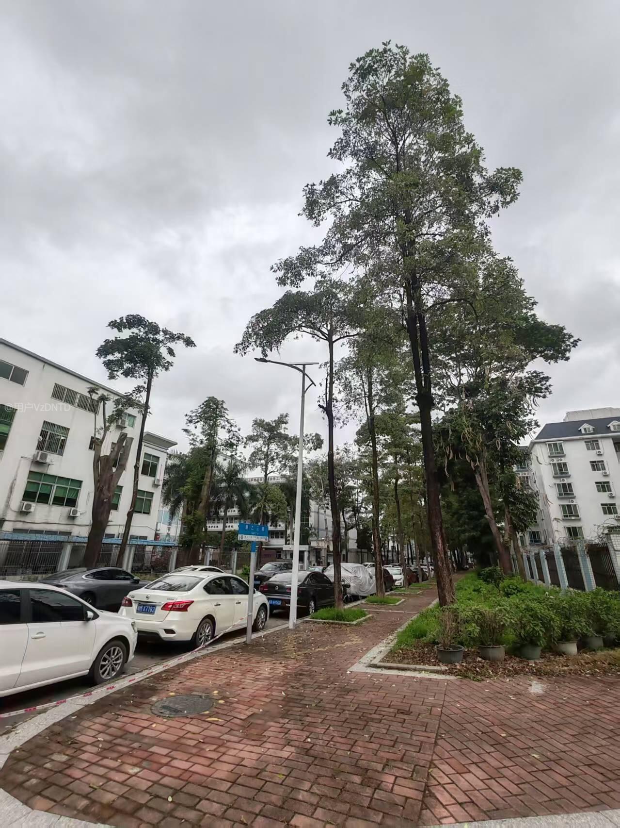 科苑城鹿乙三路,今天(3月30日)突然暴雨狂风,树枝随风乱舞,路过时胆战心惊的,路两边原有高树,常因刮风暴雨天气导致树枝断裂从高空坠落造成市民车辆或建筑物的经济损失;现在的状况是路左边的高树全部已拦腰砍断修枝,剩下右边两棵高大的凤凰树,高出建筑无遮掩保护,很容易折断树枝往下掉落,造成不必要的经济损失,后期雨季来临,强烈建议相关部门尽快现场安排和对面路边一样的砍树低于建筑物处理,避免高树掉落造成事故后给相关部门带来不必要的麻烦。