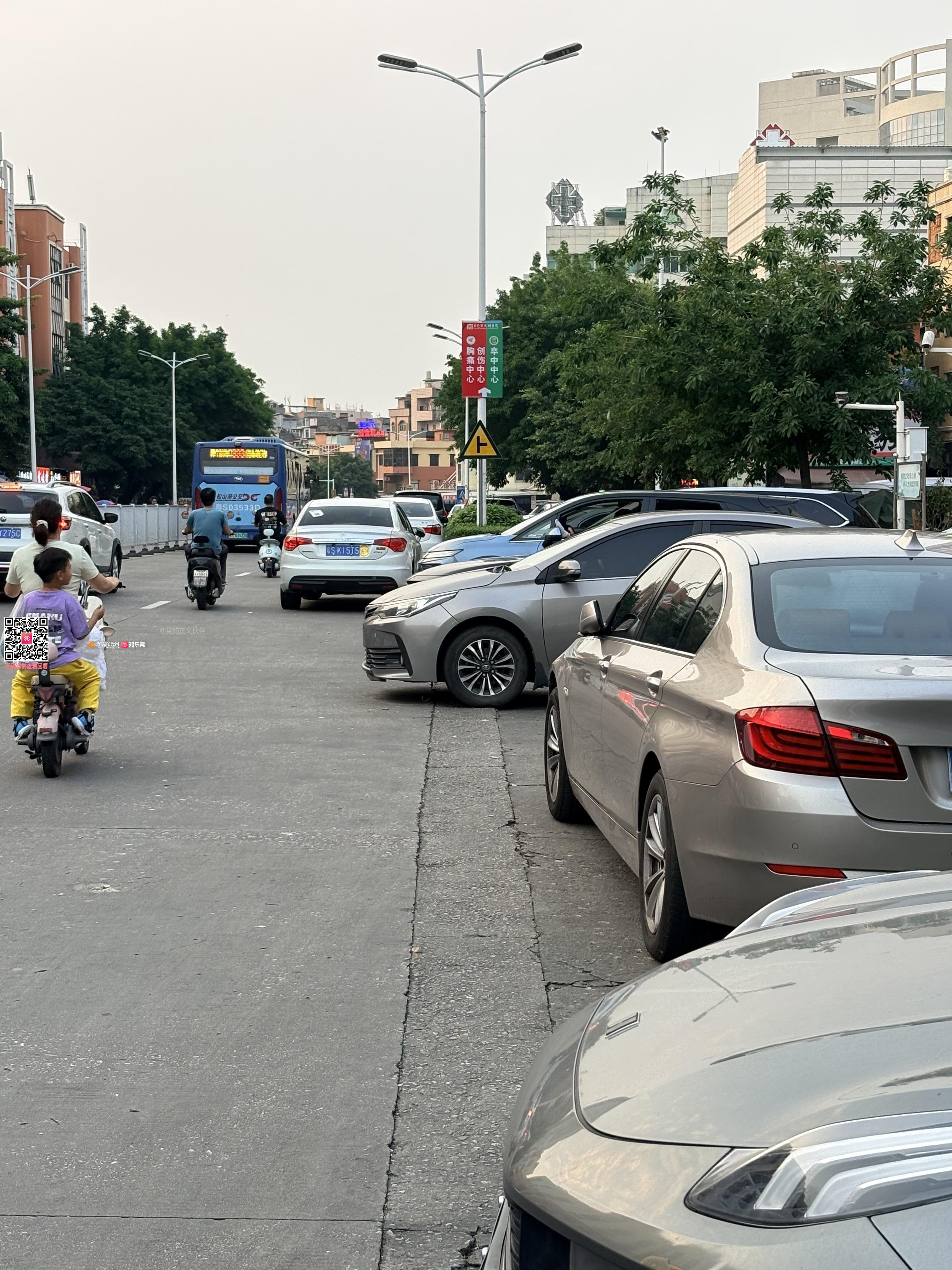 金朗中路 151 号下午 5 点半后,双车道有一半给乱停车的占道,变成单行道,自动车和机动车一起走,非常危险,请交警每周或者每两周过来抄一次牌或者警告