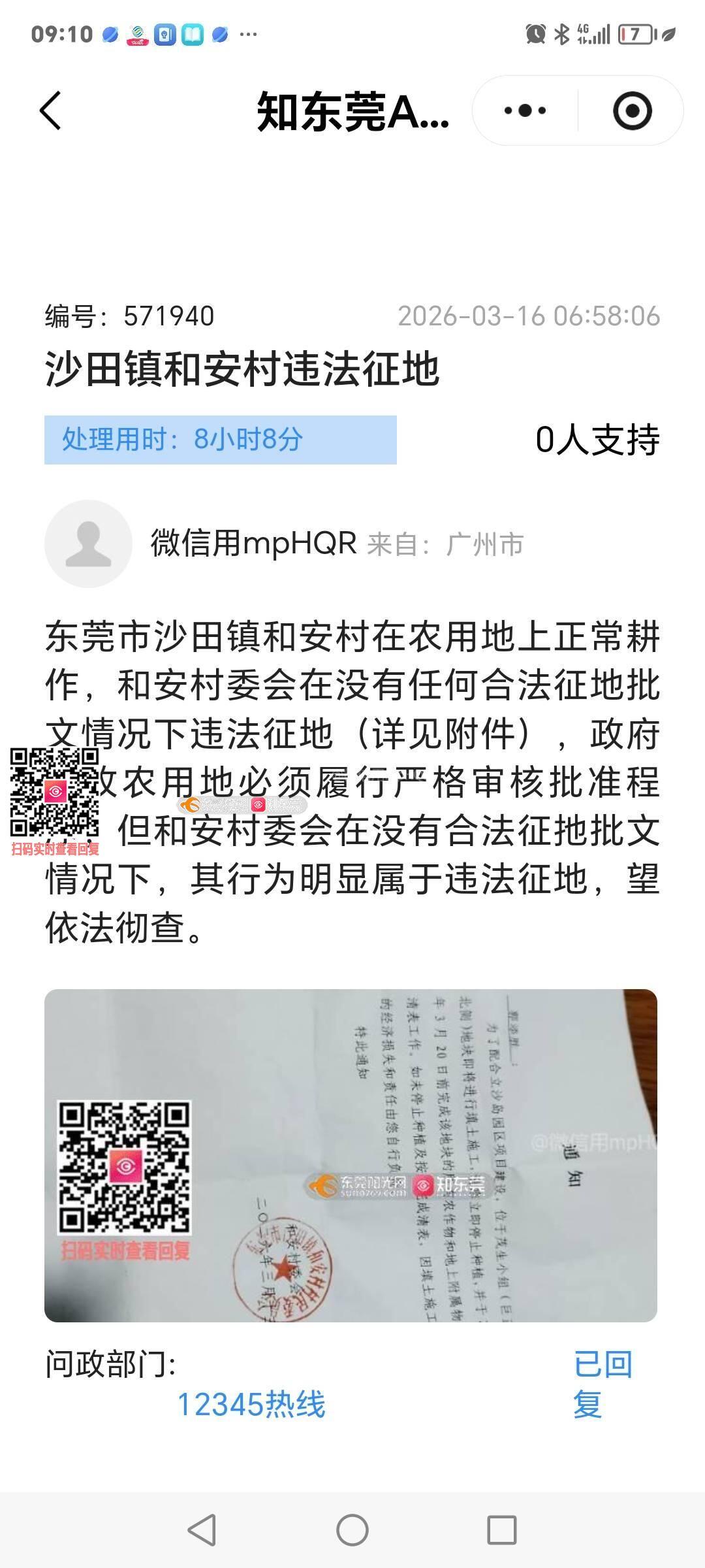 沙田镇关于违法征地回复答非所问