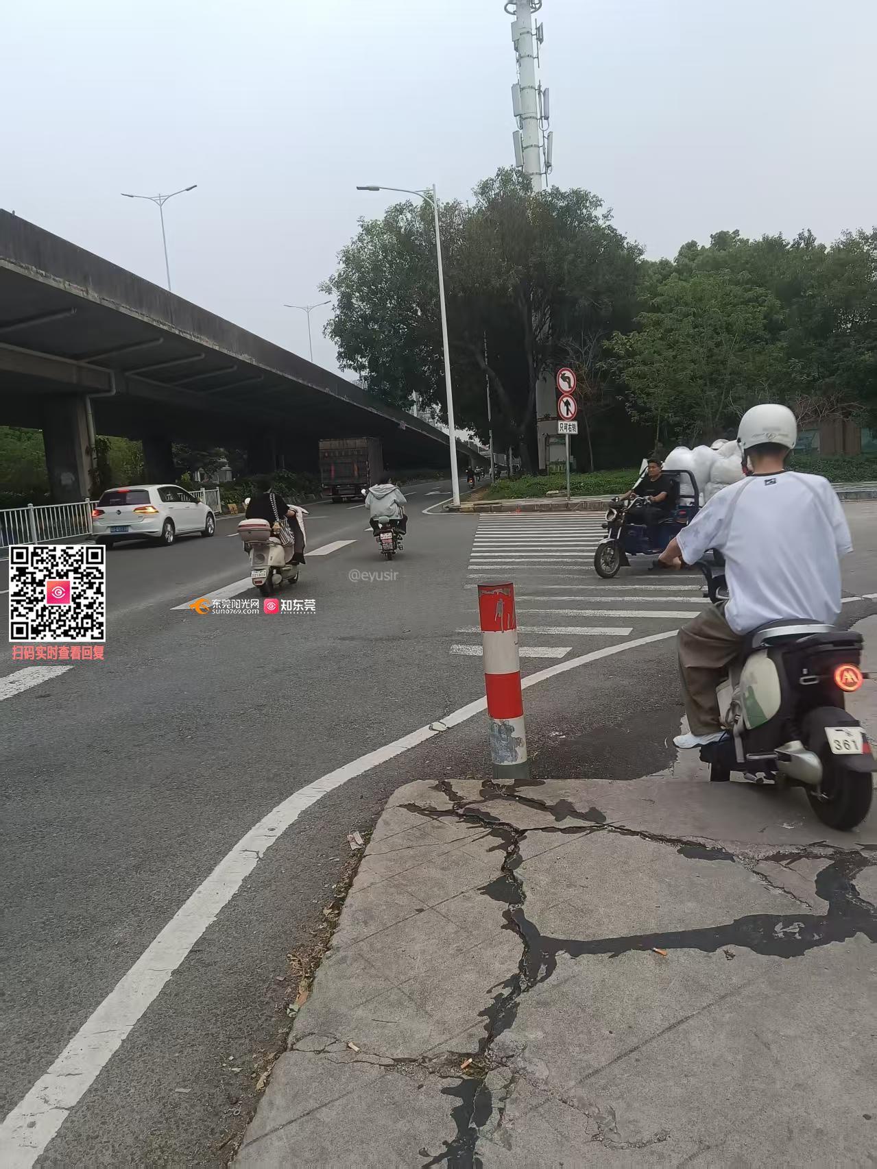 北潢路与崇焕西路立交桥下没有人行道和自行车道,电动车非常多,成一交通事故很危险