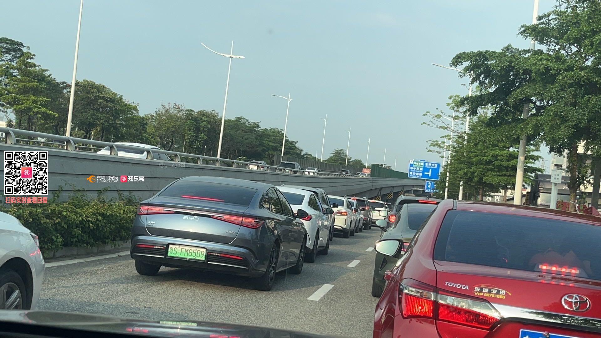 松山湖大道桥底红绿灯上班高峰期红灯等待时间长,绿灯的时候短(大概15秒左右),堵车严重,希望有关部门尽快处理一下。