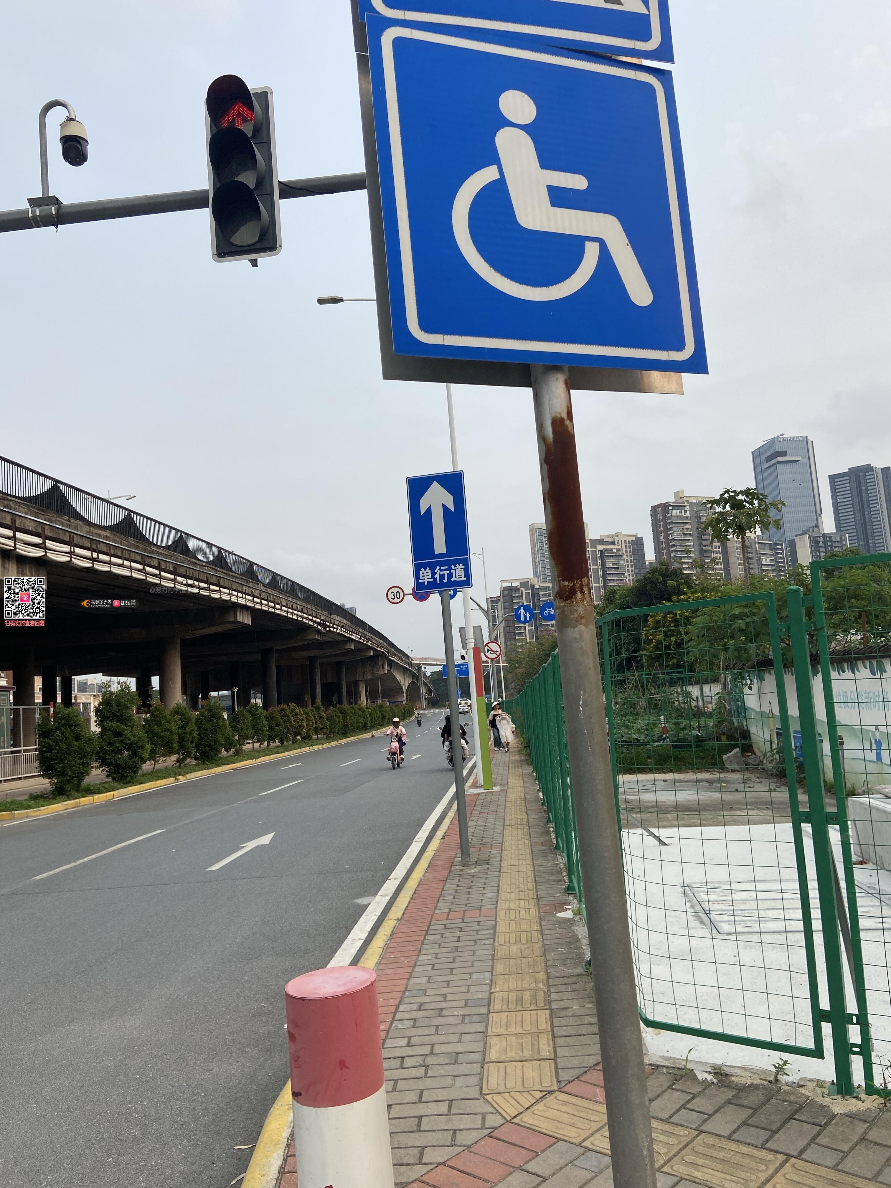 海宁二路的这边人行道极窄,但是根据道路标识这里是人行道自行车道以及无障碍通道。你让自行车以及无障碍车辆怎么走?根据观察,我们一般都是走马路,不太安全。