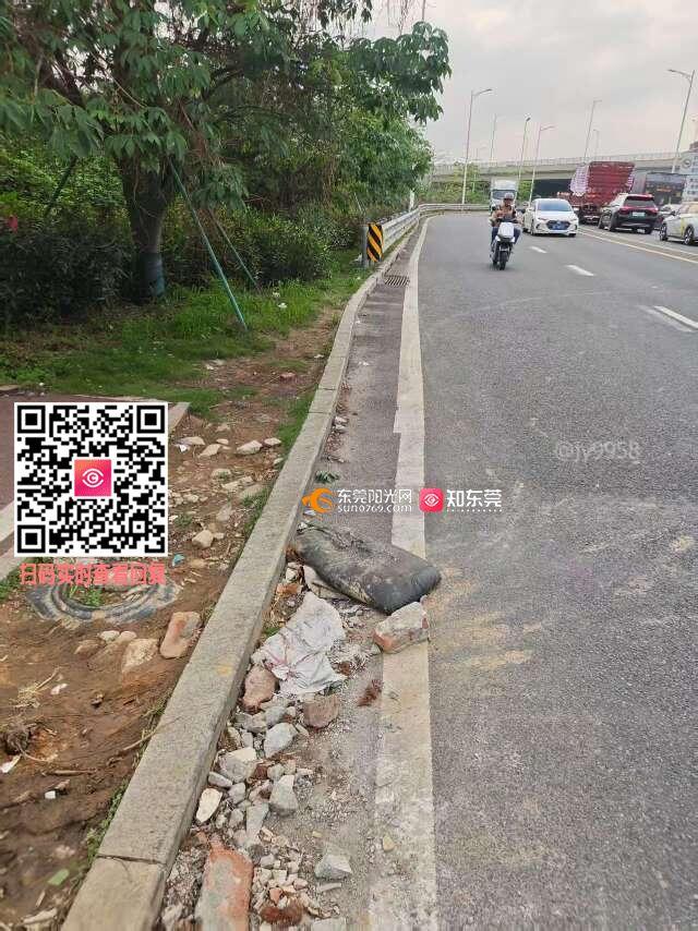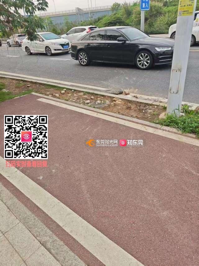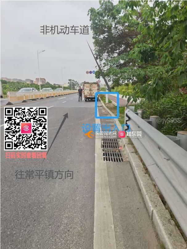 在松山湖大道延长线常平段(广龙高速常平西出口-常平方向),目前该路段已有铺设非机动车道,但是没有设置非机动车道入口,导致非机动车需要与机动车并用机动车道,存在安全隐患,恳请优化增设非机动车道入口,方便电动车安全通行