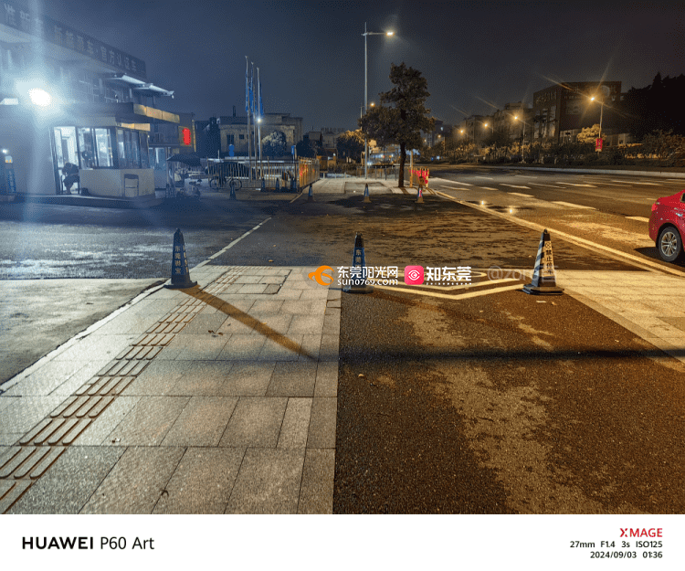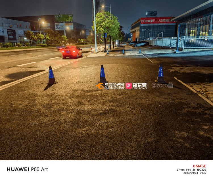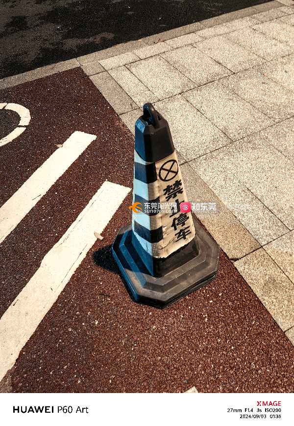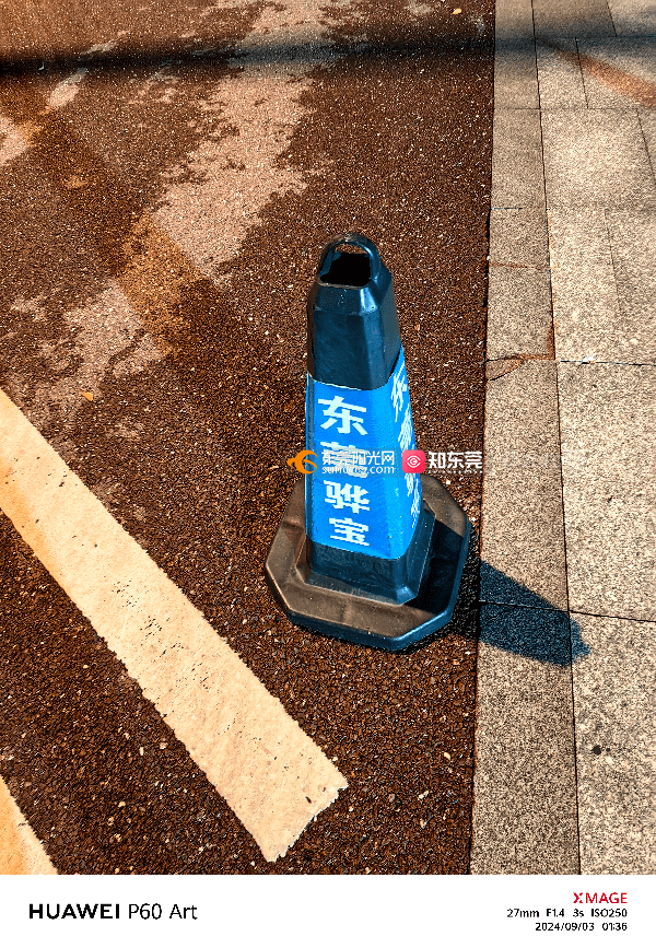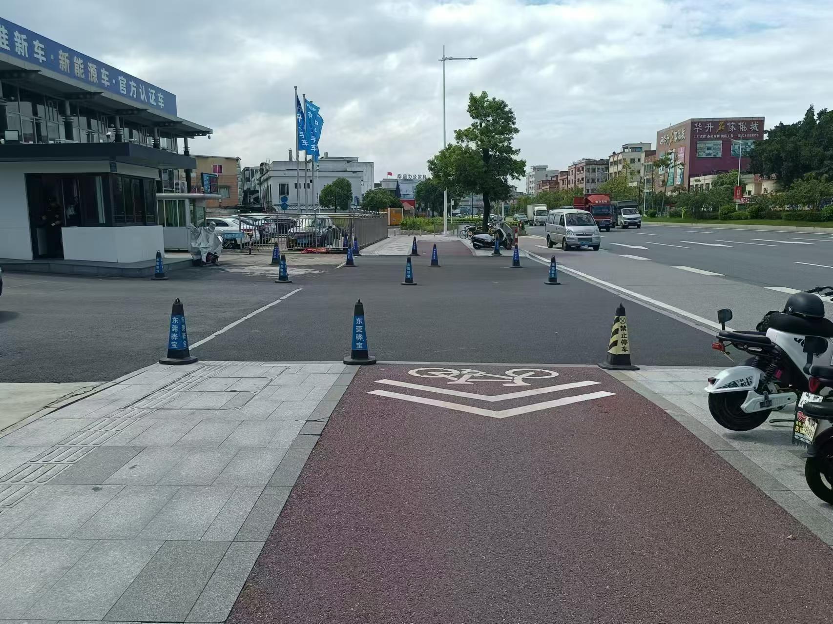 2024年9月3日广东省东莞市厚街镇溪头社区莞太路厚街段565号市政道路人行道长期被两家车行(中升二手车和东莞驰宝)长期摆放多个路障(俗称:雪糕桶)占用市政道路公共区域