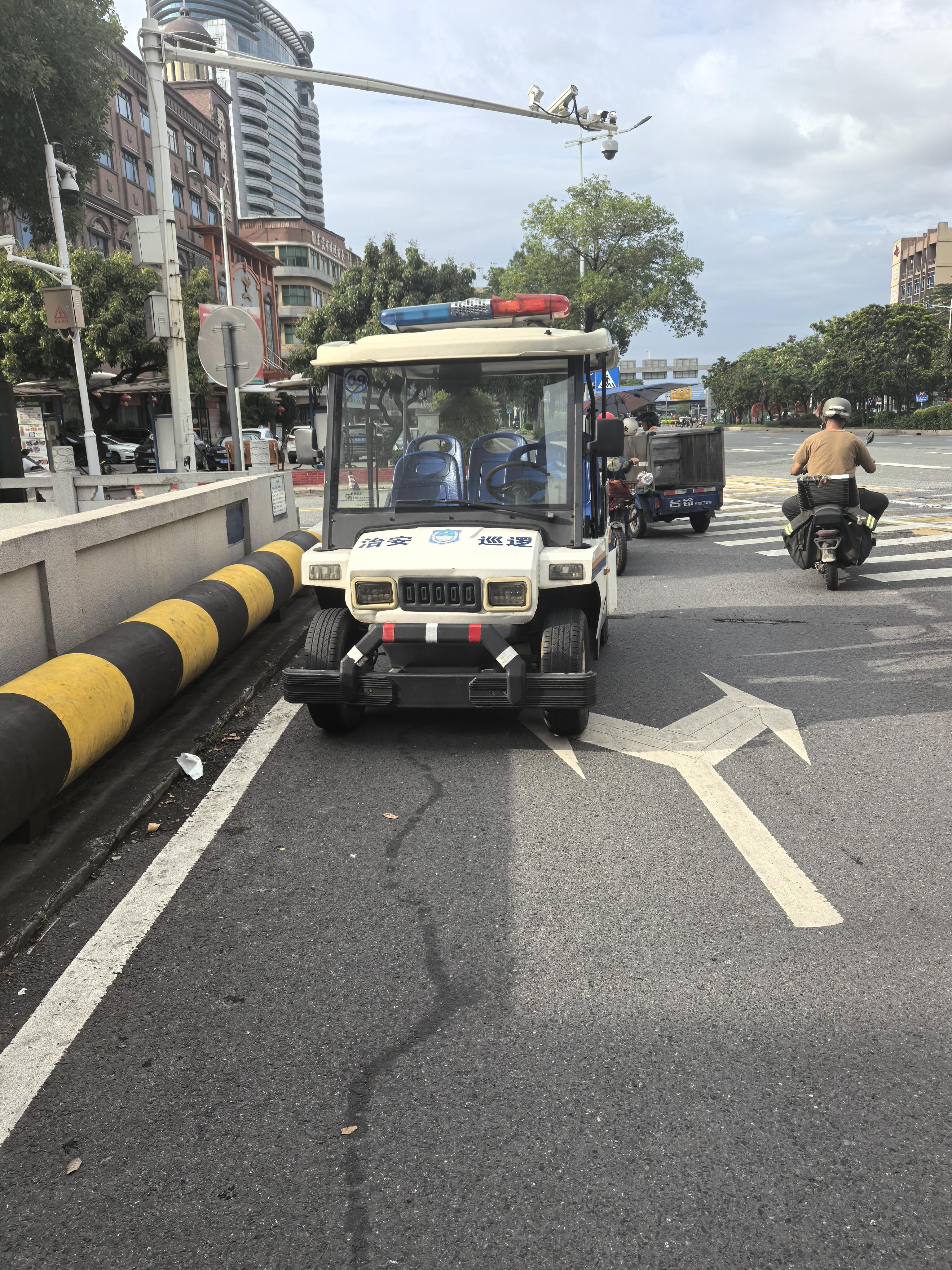 尊敬的市民,您好!您反映的问题已收悉,现回复如下:经核实该警员属赤岭治安联防队员,穿着辅警制服,非警察制式衣服。照片中的电动巡逻车为厚街分局统一发放给各警区的勤务车辆,在本村道路上行驶。感谢您对我们工作的理解和支持!赤岭社区电话:0769-85883299。