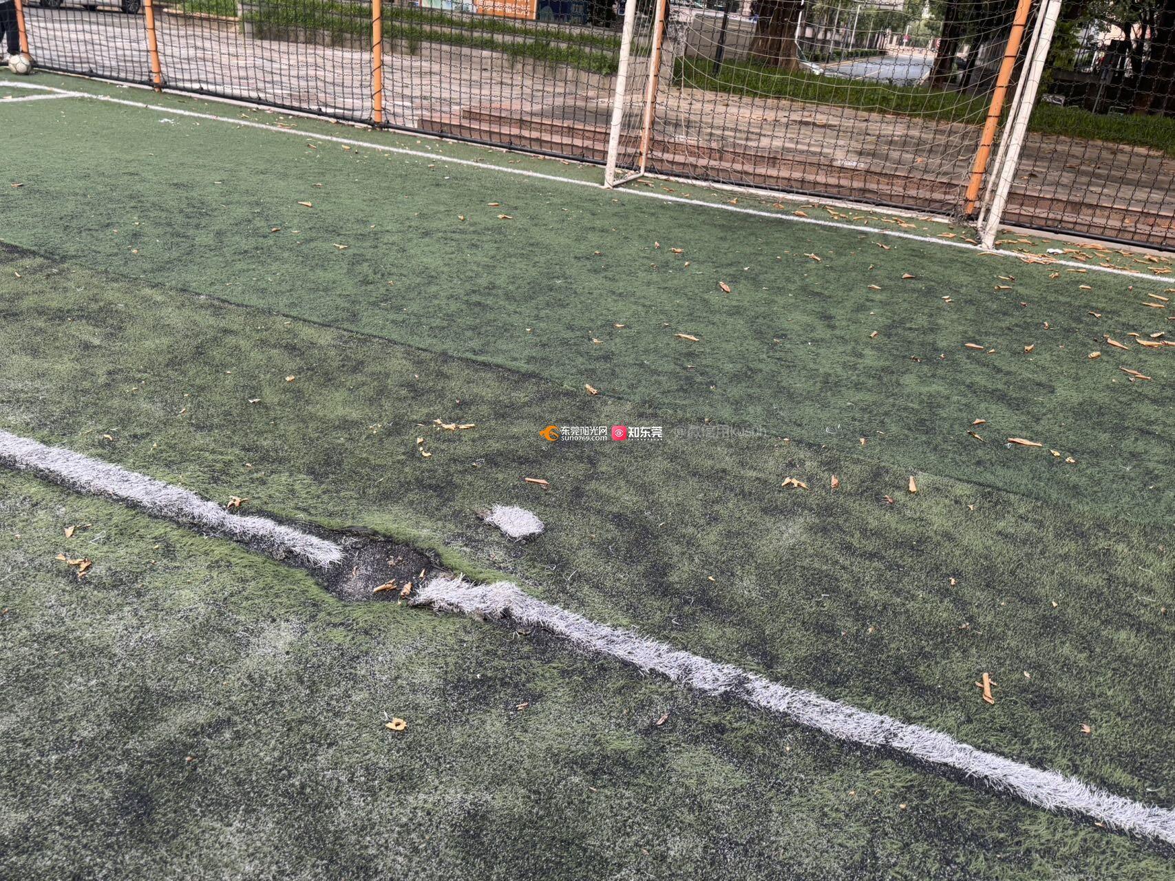 塘厦体育馆足球场场地如图所见,人造草坪磨损严重,出现坑洞,破裂等情况,部分草坪露出原始水泥地面,球门破损,场地环境差,收费贵,早上包场100元/h晚上150元/h,这样的场地质量,与收费价格严重不符