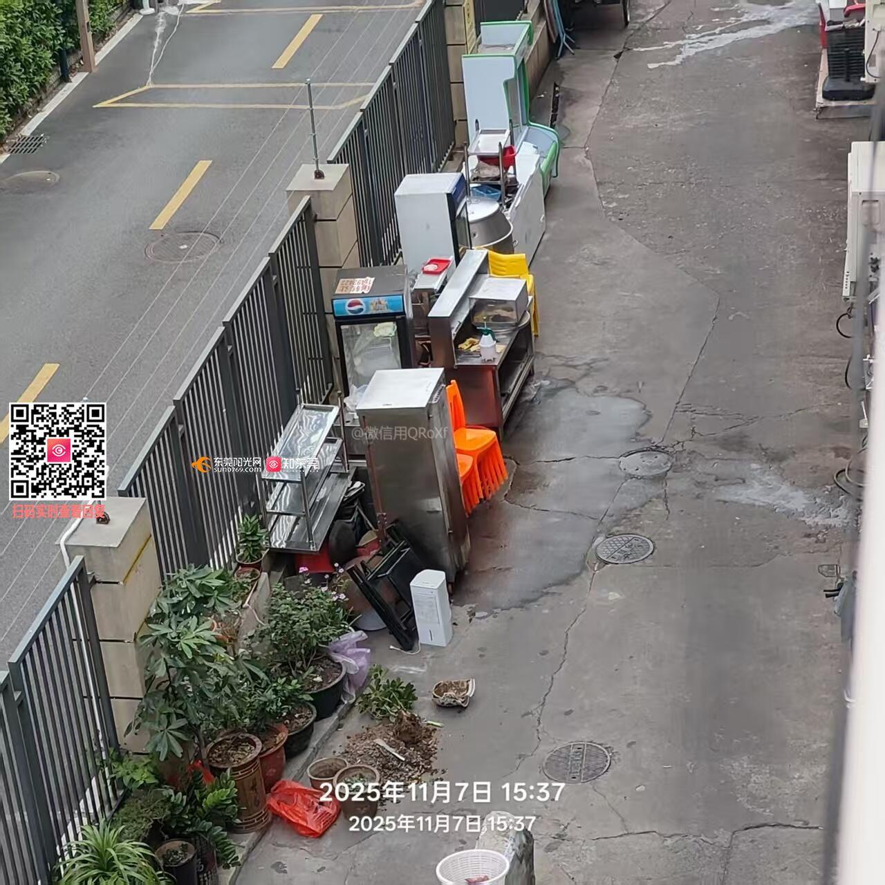宏明花园小区2025年11月7日污水实拍,商户霸占主通道使用化学剂清洗二手厨具,业主们苦不堪言,多次向物业管理处反应,物业领导懒政,不作为,任由污水横流。