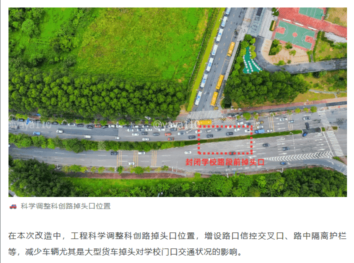 清溪北环路海德学校掉头口位置设置不合理问题及建议 1.该段路起止两个红绿灯仅为2.4公里如图,却在中间路段设置两个掉头口且双向掉头,随机通行造成拥堵; 2.两个掉头口均有人行天桥,应该封掉底下的掉头口,不然实际情况就是人,电瓶车,私家车,大货车在两个掉头口通行且双向,安全隐患极大; 3.该位置属于中间段,晚上路灯昏暗,树木茂盛,多是大货车在此掉头,人车及电瓶通行无序,严重阻碍驾驶人的通行视线视野,且由于人车电瓶车都在此通行,随机突发事件几率大增。 4.参考东园大道,建设天桥后就将底下路口封住。以及同样是学校路段的南城第一初级中学门前的科创路,在改造过程中调整掉头口。 尊敬的市民,您好!您反映的问题已收悉,现回复如下: 1、关于市民反映路灯昏暗问题,经排查,北环路路灯全线正常亮灯。 2、关于树木茂盛,已经安排养护单位前往处理,目前已经完成指定路段行道树修剪作业。 3、关于掉头口问题:一是根据《中华人民共和国公路法》第五章第四十三条之规定,县级以上地方人民政府交通主管部门应当认真履行职责,依法做好公路保护工作,并努力采用科学的管理方法和先进的技术手段,提高公路管理水平,逐步完善公路设施,保障公路的完好、安全和畅通。信访人反映的北环路为X232县道,行政主管部门当为交通主管部门或下辖单位。二是根据《东莞市交通运输局道路路政许可(审批)事项》相关规定,在公路(国、省、县道)上增设或改造平面交叉路口,均归属其负责审批事宜。 三是《中华人民共和国道路交通安全法》虽赋予交管部门提出调整建议的权利,但最终决定权、实施权仍在道路主管部门,属地交管大队主要负责道路动态交通管理(如执法、信号灯通行配时调整等)。综上所述,关于信访人提出将北环路两个掉头口改造封闭的建议,建议由作为县道路行政主管部门的市交通部门,积极履行职责,牵头研究建议实施的可行性或必要性,交管大队全力配合。