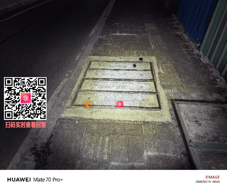 2026年2月10日广东省东莞市厚街镇溪头社区莞太路厚街段520号东莞农村商业银行正门对面人行道有一个穗莞深城际铁路深圳供电段高压电缆水泥井盖拦截断了残障设施盲道,多年致电上面的深圳供电段的座机无人解决处理