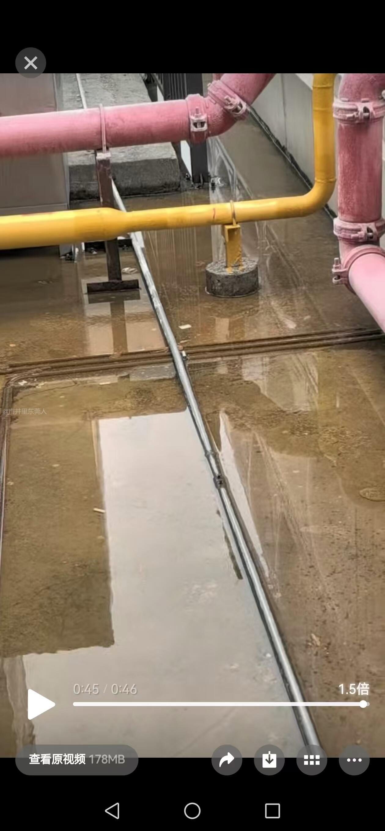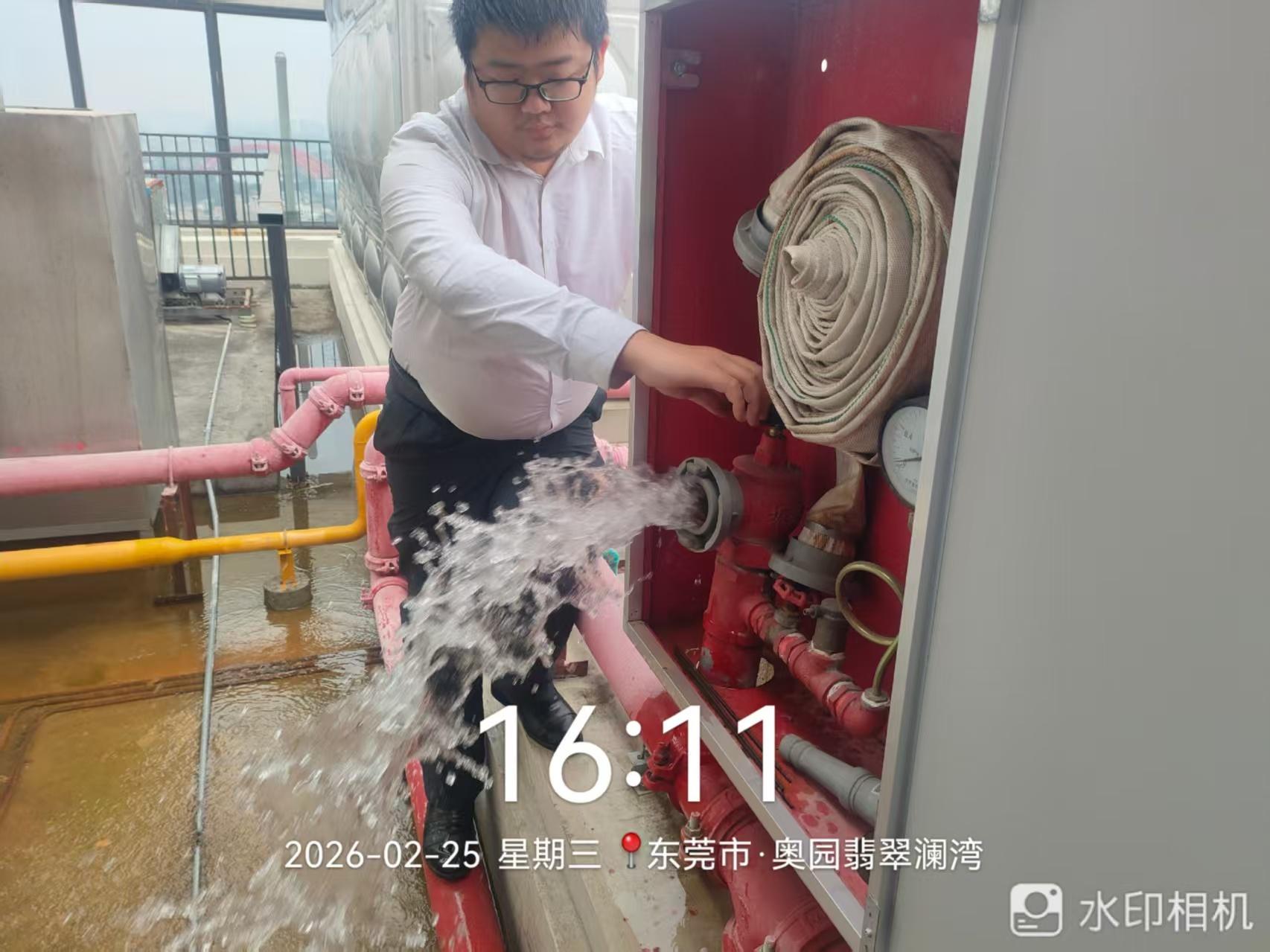 楼顶积水、漏水导致存在基孔肯雅热传播及屋顶渗水的风险。 如图所见,万江奥园誉江苑的2栋楼顶消防管漏水已久,整个楼顶已泡、甚至水流延着楼梯而下。 小区物业管理人员表示早在上周已向相关行政部门报修,但是至今未有人来维修。 问题:1、积水会导致存在基孔肯雅热传播的风险隐患。虽然全运会已结束、但健康环境的营造工作不能结束。 人民群众的生活健康需要持续受关注,文明城市建设唯有持之以恒、久久为功。 2、消防管道的持续漏水,既对顶楼居民房屋造成影响、甚至破坏,也白白浪费国家珍贵淡水资源。 建议:既然物业人员【上周】已保修,建议有关单位尽快派员来修,不要等春节后。避免漫长春节期间水渗入房屋天花板, 聚水不一定来财。