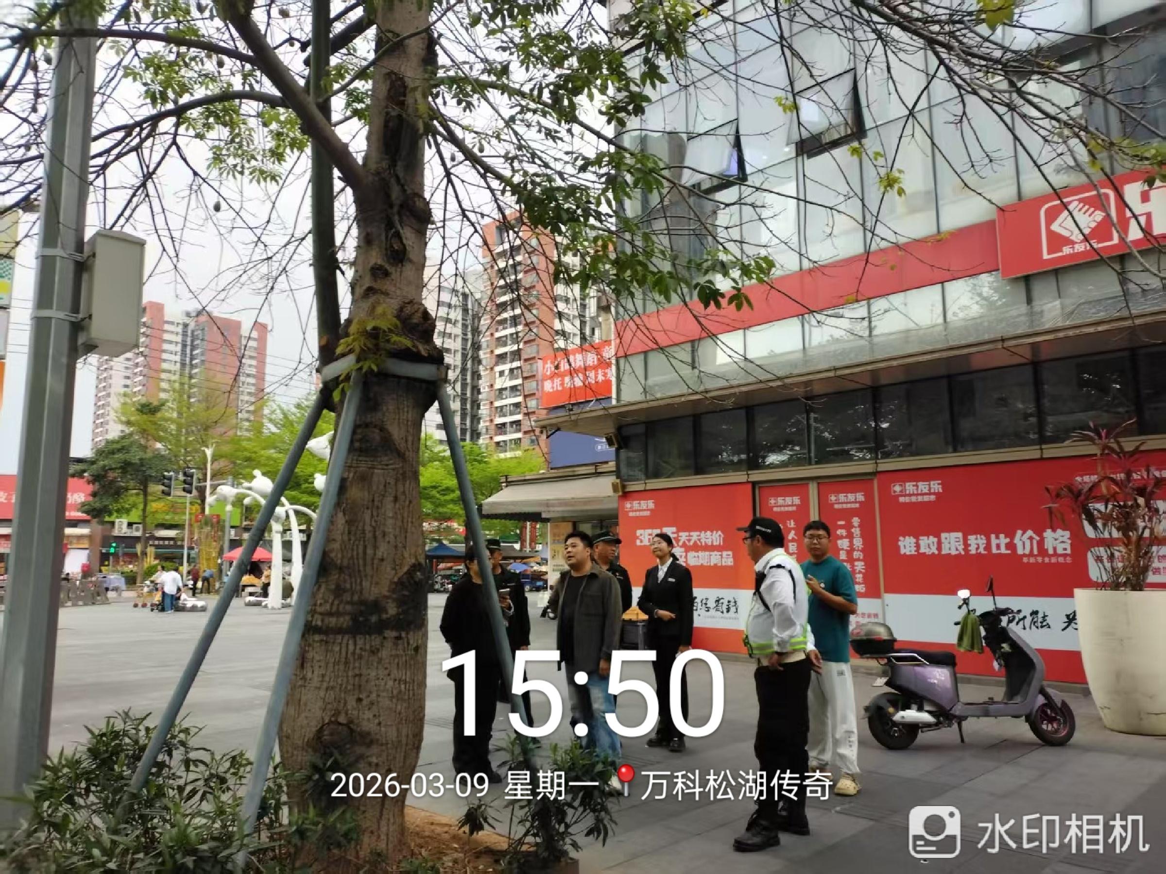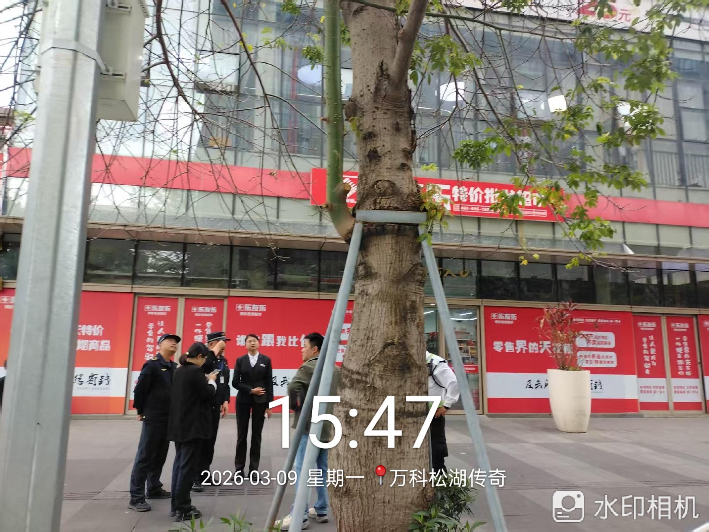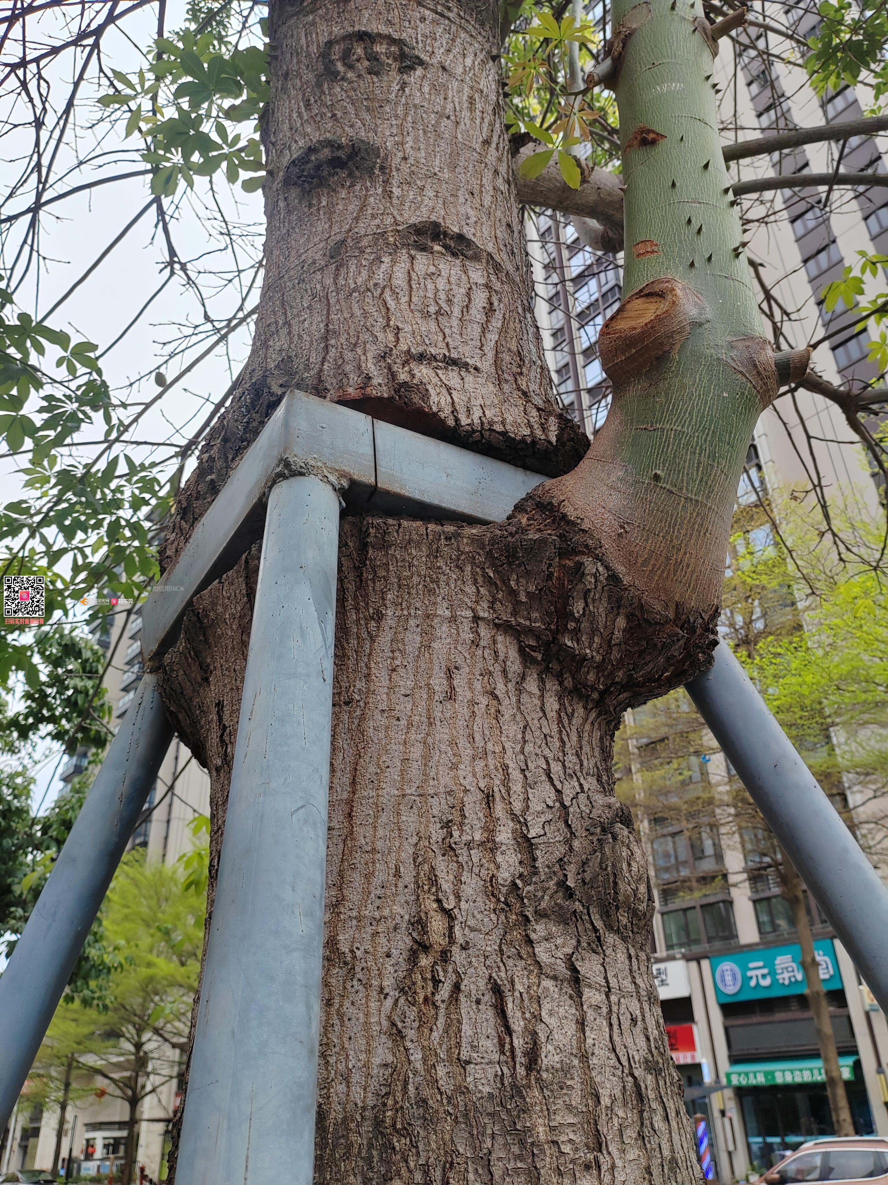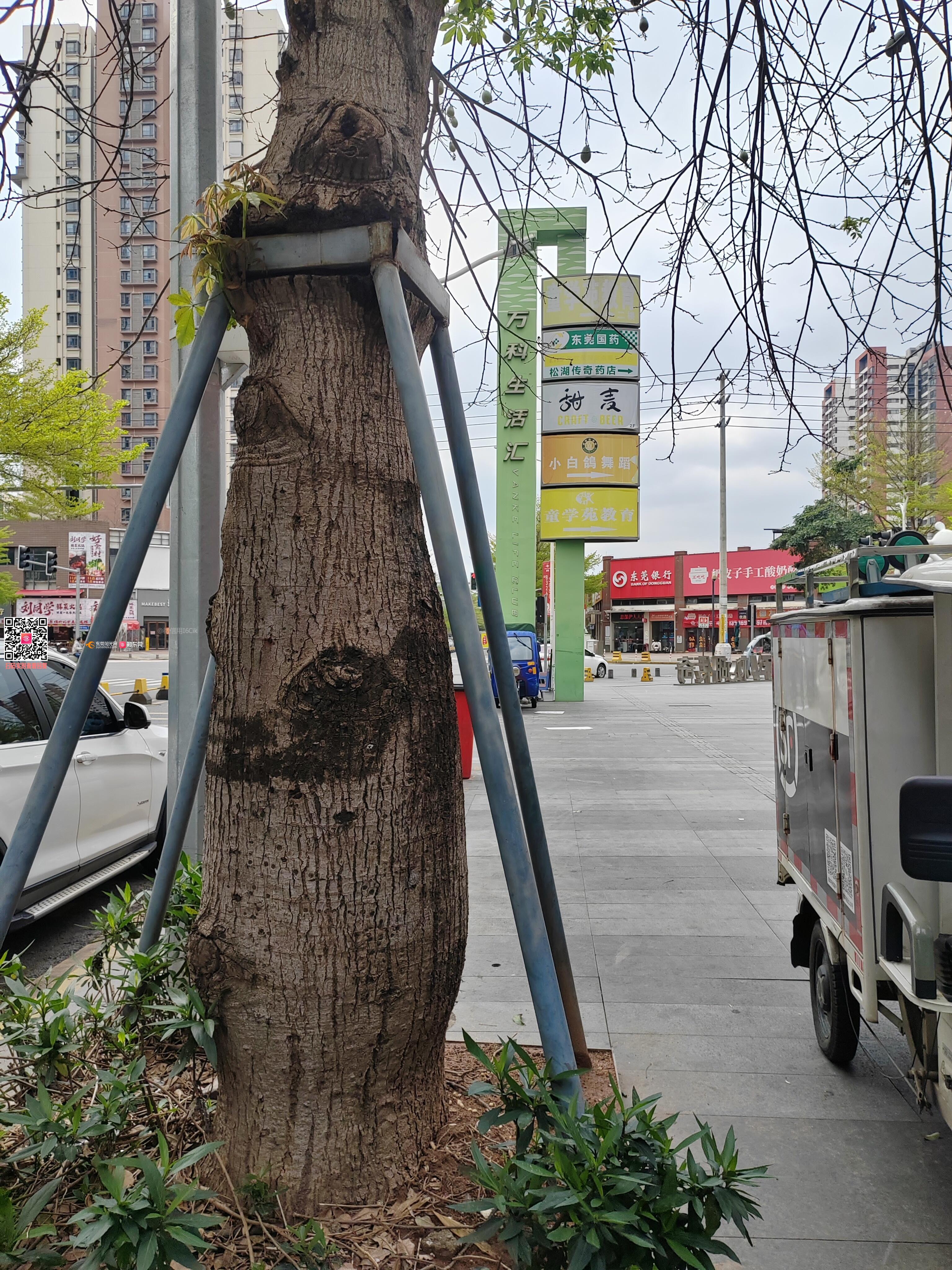 万科松湖传奇路边,乐友乐超市门口这棵木棉树被勒的树干都变形了。应该给它松一下。