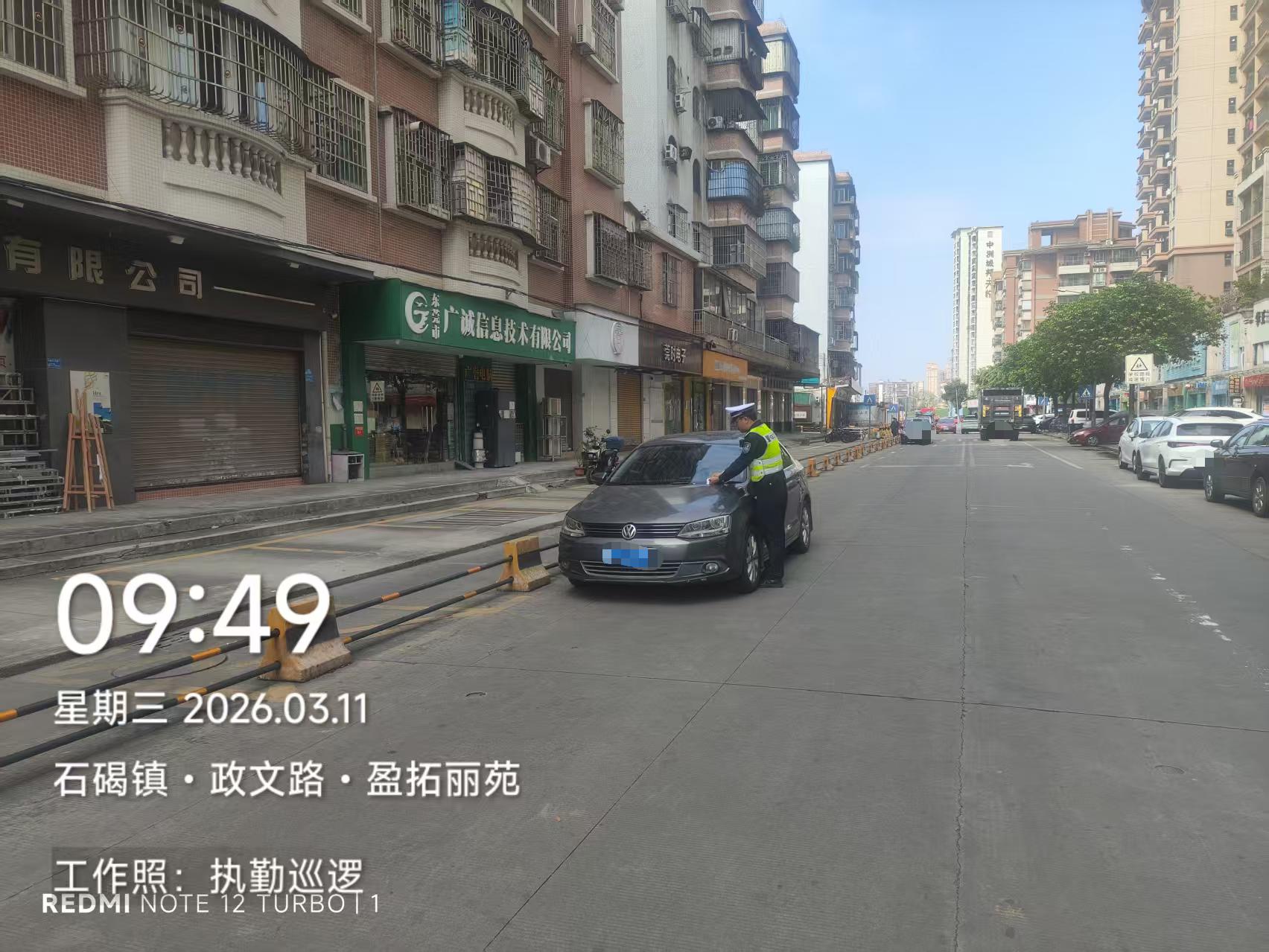 尊敬的市民,您好!您反映的问题已收悉,现回复如下:我大队已布置警力到场处理,暂未发现市民所述车辆,因无法现场固定上述车辆的交通违法行为,暂未能作出处罚,我队已致电上述车辆作出警告教育处理。接下来我队在的日常巡逻管控中加强周边路段的管控力度,严查乱停乱放等交通违法行为。也欢迎您及时举报交通违法车辆,警民共创优良交通秩序。在此建议市民遇上乱停乱放影响交通安全等交通管理问题应立即拨打我大队值班室电话86322666反映相关问题,我大队将第一时间跟进处理。 感谢您对我们工作的理解和支持! 东莞市公安局交通管理支队石碣大队 2026年3月11日