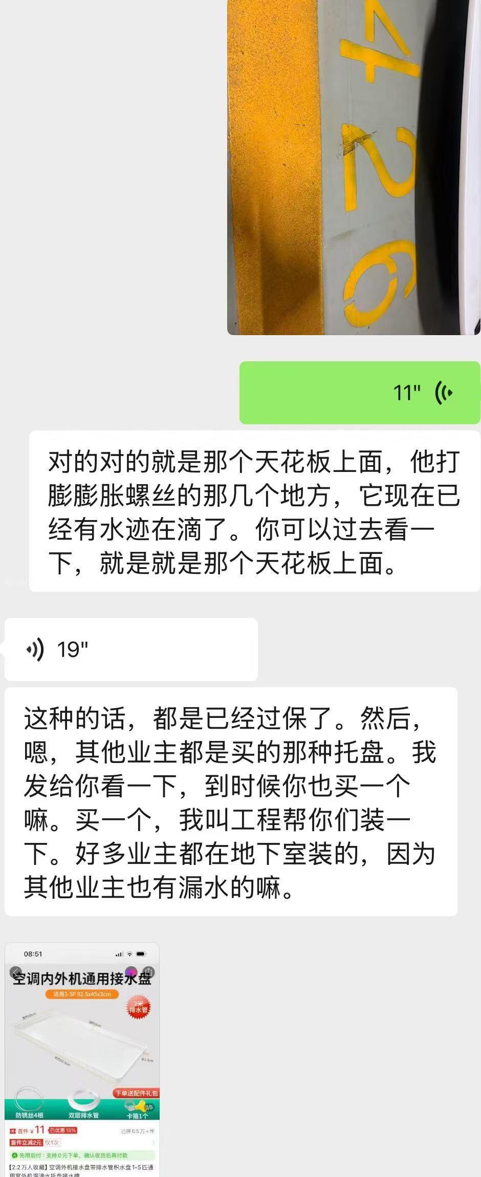海伦堡松湖湾车位天花板漏水,物业不处理
