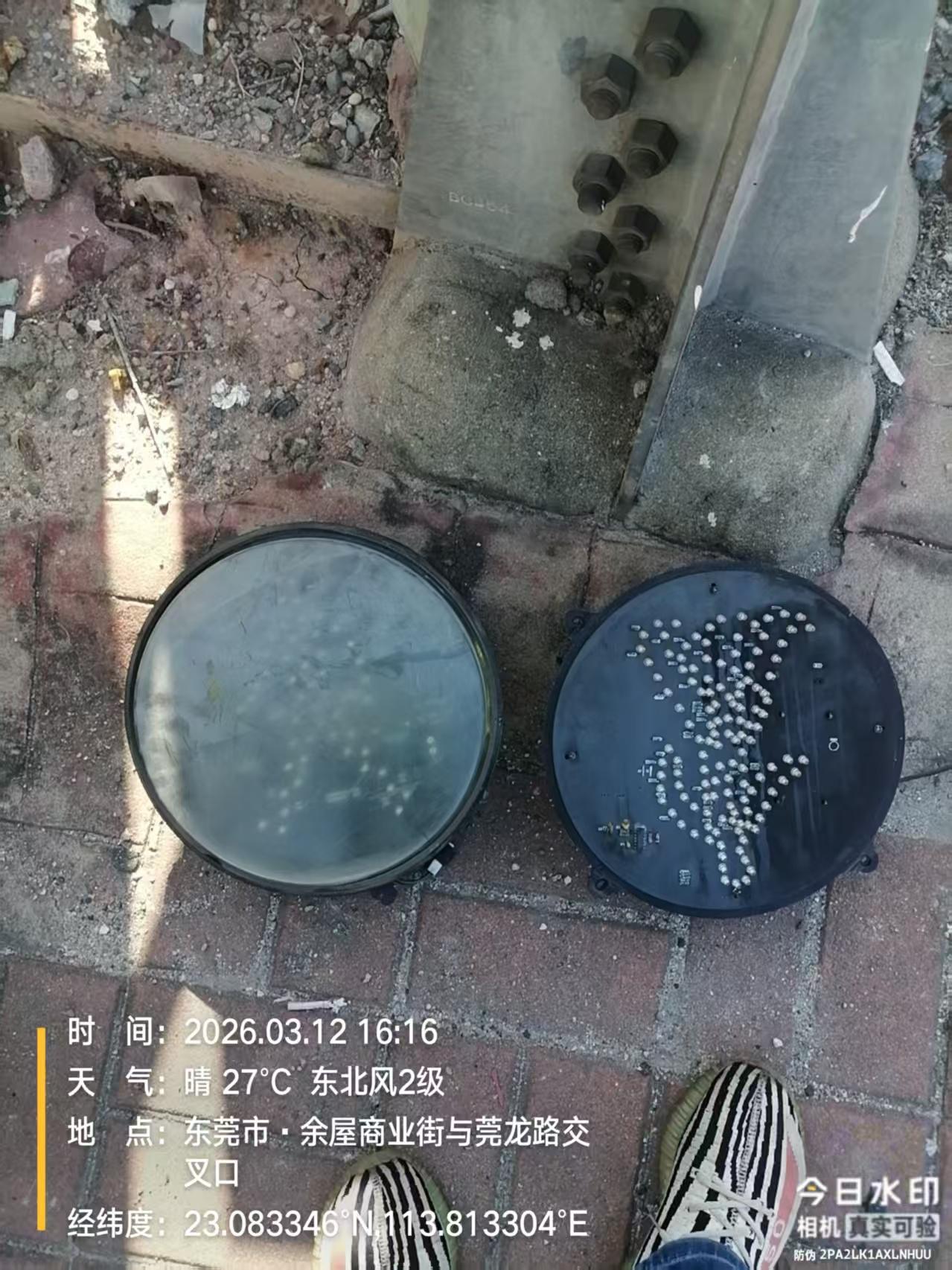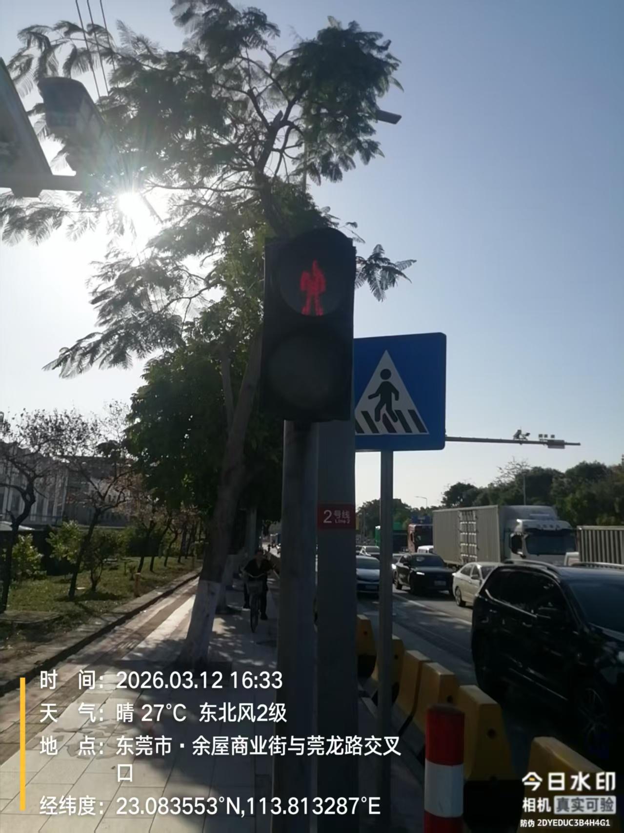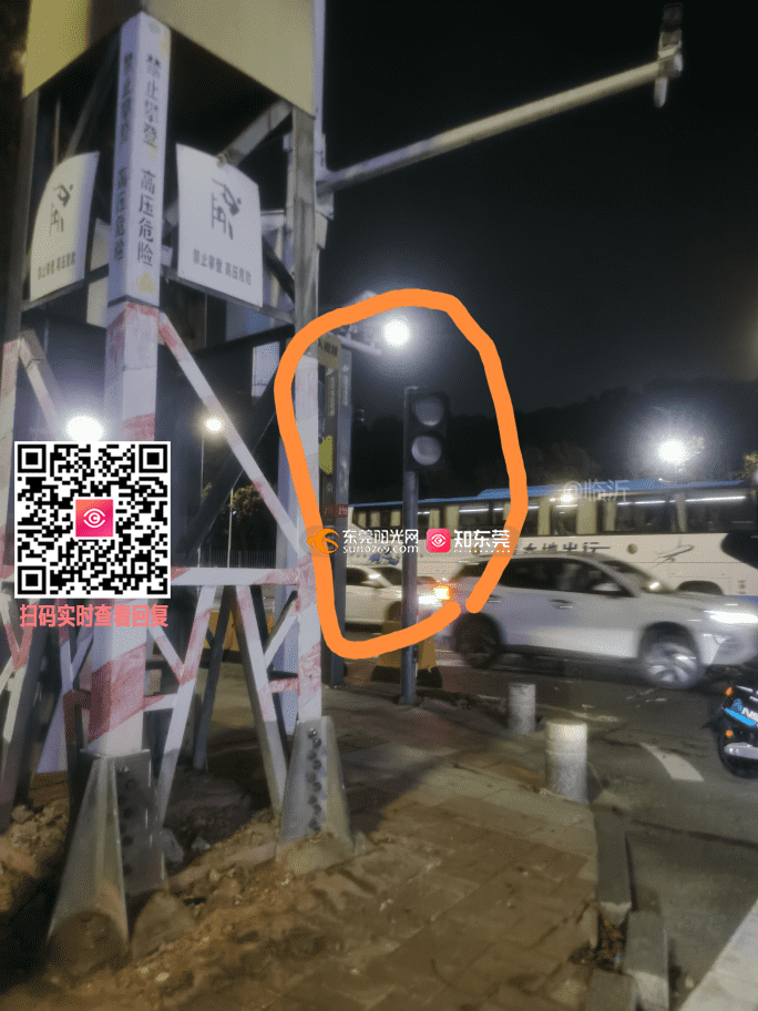 东莞市莞城路,对面东城停车场,华悦沐足,门口的红绿灯,人行道红绿灯,线路不良,