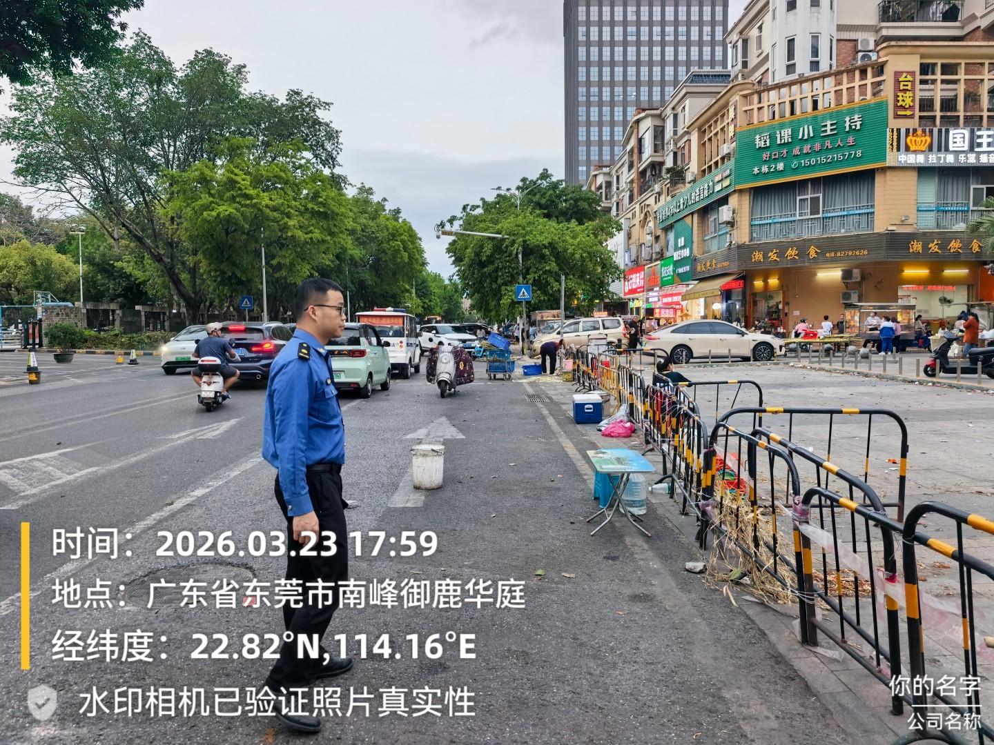 清溪御鹿华庭麒麟广场外的马路上流动商贩占道经营越演越烈,之前已投诉过,但城管局清溪分局现场巡逻执法后说没存在摆卖现象。我将最近不同时段的现场摆卖的盛况拍下让有关主管部门看看,每天最高峰的时段是早上6:30到8:30,傍晚17:00-19:00,烦请有关执法部门在这时间段来现场看看,情况是否属实。摆摊商贩白天用石墩及其他工具霸占位置,便于其摆放方便,摆卖独占了一条车道甚至一条半车道,导致双向四车道的道路变成双向一车道,使该路段拥堵尤为严重,导致机动车、非机动车逆行成常态,行人过街险象环生。其中,周边小区中小学生早晚上下学途经此处,人身安全受到严重威胁,令人忧心忡忡。希望上述问题有关主管部门能够加大执法力度,彻底整治该乱象。