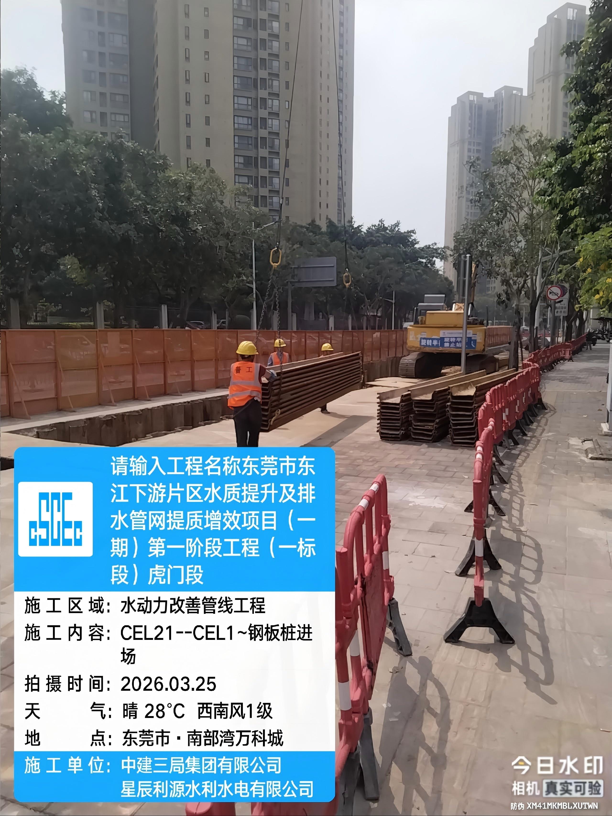 尊敬的市民,您好!您反映的问题已收悉,现回复如下: 一、收到反映的情况后,我们于2026年3月24日17:04电话与您取得联系,并对您的诉求进行办理。您反映问题的工程为东莞市水务环境投资控股集团建设管理有限公司(下称“建设公司”)负责代建管理的东莞市东江下游片区水质提升及排水管网提质增效项目一期第一阶段工程(虎门镇),施工单位为星辰利源水利水电工程有限公司。 因施工工期紧张,为确保水环境整治项目于2026年4月底如期竣工,每日施工时间有所提前,考虑到施工可能产生的噪音影响,施工单位已于2026年3月9日张贴公示告知附近居民,恳请您的谅解。建设公司已督促施工单位充分考虑居民生活作息,对施工安排区分管理:常规施工工序保持早上7:00开始;产生较大噪音的特定工序,其开始时间调整至早上8:00以后。同时,施工单位已优化施工工序,严格限定高噪音设备使用时间,禁止在居民休息时段(12:00至14:00,22:00至次日7:00)开展高噪音作业。由此造成不便,敬请谅解。 2026年3月24日,工作人员致电告知您上述情况。如有疑问,欢迎致电水务环境集团24小时客服热线96968,感谢您对我们工作的理解和支持!二、接投诉后,我分局工作人员马上联系您了解诉求,并于2026年3月31日派出执法人员到虎门镇长德路南部湾万科城周边道路进行勘查,经查,该处为水动力改善管线工程。根据《中华人民共和国噪声污染防治法》等有关法律规定,6时至12时,14时至22时为可建设施工时间;使用蒸汽桩机、锤击桩机进行施工作业时,其施工时间为7时至12时,14时至20时。综合考虑到周边为住宅密集区,为保障群众充分休息,执法人员已向施工方作了解释与宣传,要求其严格按照相关规定的时间段施工。接下来,我分局将继续加强巡查力度。如有城市管理方面的问题,可致电东莞市城市管理和综合执法局虎门分局24小时值班电话:89328222或通过微信公众号“东莞城市管理”进行反映。 感谢您对城市管理工作的监督与支持!