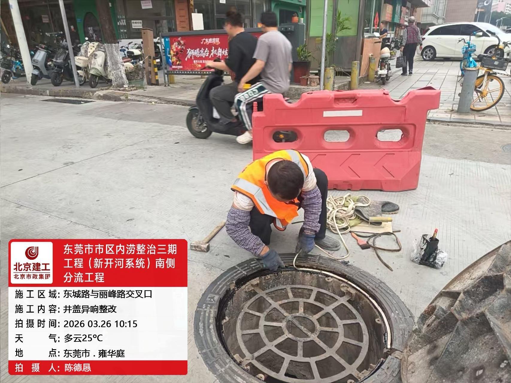 尊敬的市民,您好!您反映的问题已收悉,现回复如下: 据莞城水务工程运营中心了解,该异响井盖已增加减音胶。 另外,莞城水务工程运营中心工作人员已于3月26日通过电话向您反馈有关情况。若您有其它疑问,可致电莞城水务工程运营中心0769-22321099进行咨询。谢谢您对我们工作的理解和支持!