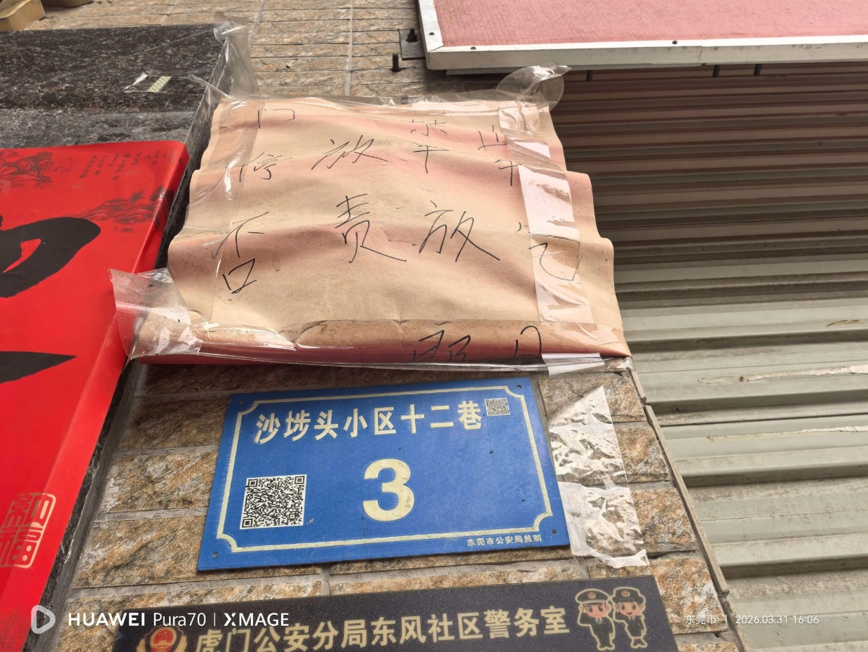 投诉地点:东莞市虎门镇东风沙埗头小区12巷2号与3号之间转弯处(村内唯一通行窄巷、消防生命通道)。 该处长期停放6-7辆汽车,完全堵死转弯,车辆无法通行,严重影响居民出行与应急救援。 此前东风警务室已贴违停告知,但遭违停车主租客反向投诉施压,整治中断、乱象反弹。 依据《消防法》第28、60条,占用堵塞消防通道属违法行为,恳请虎门镇协调消防、交警部门: 1. 依法处罚、强制拖离违停车辆; 2. 设立禁停标识、常态化巡查; 3. 不受个别投诉干扰,严格执法,保障生命通道畅通。